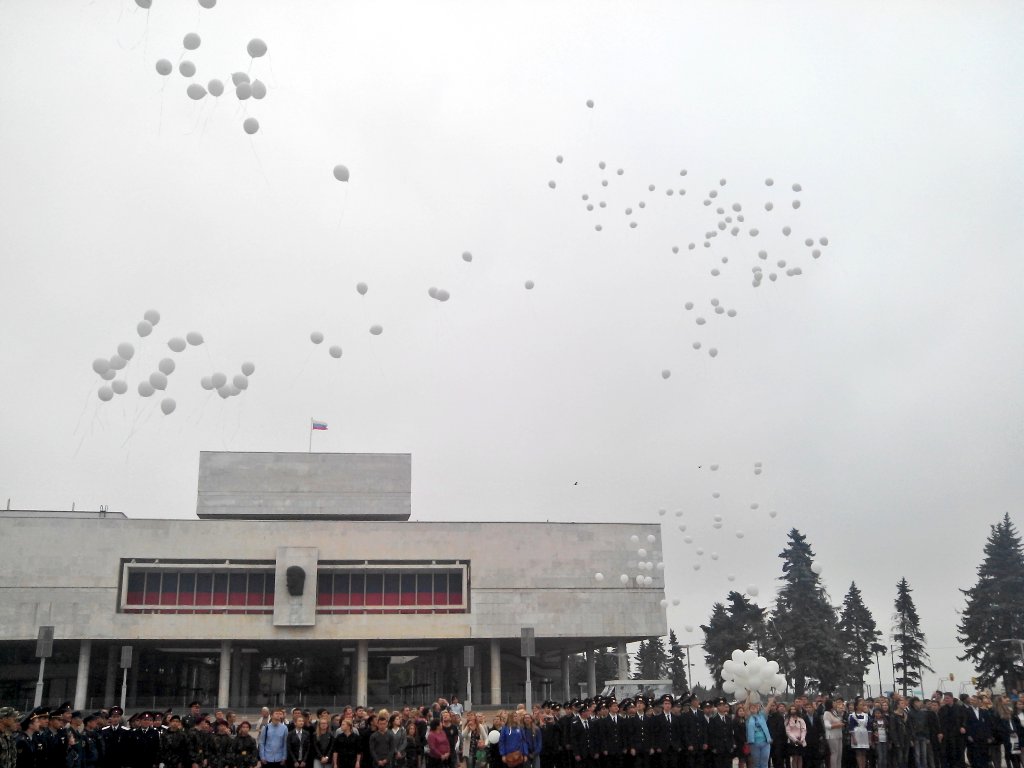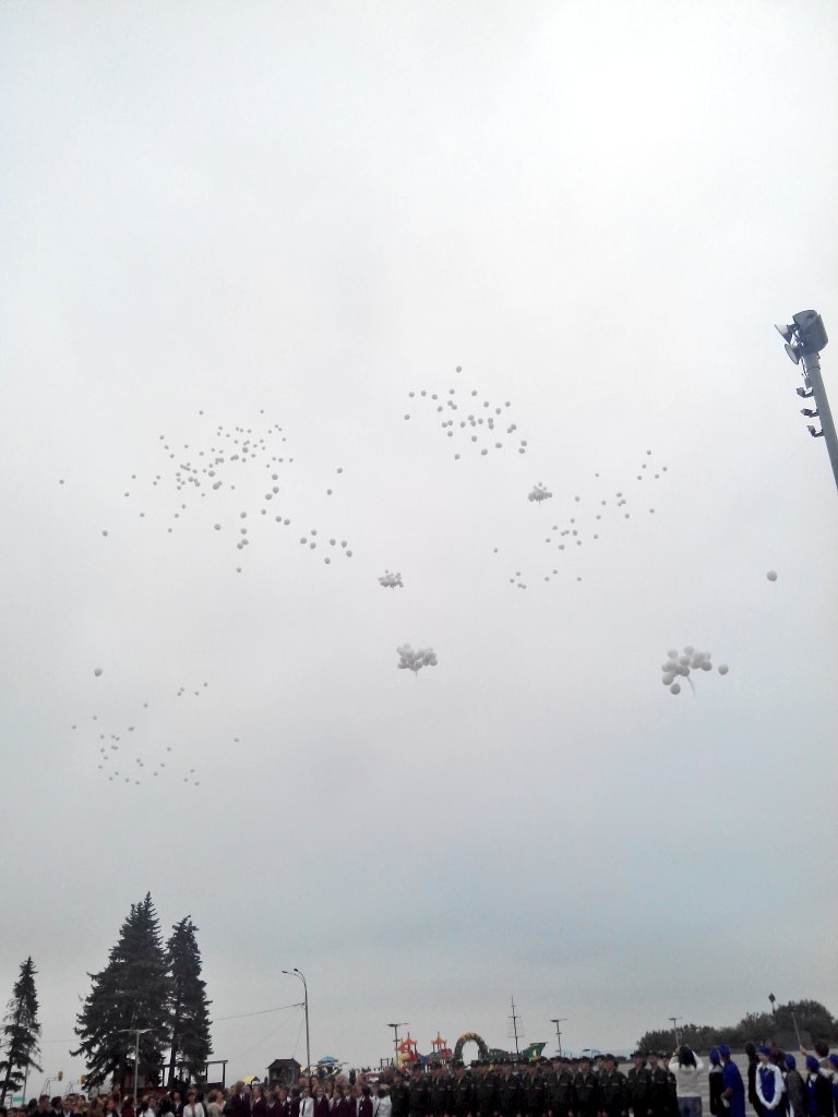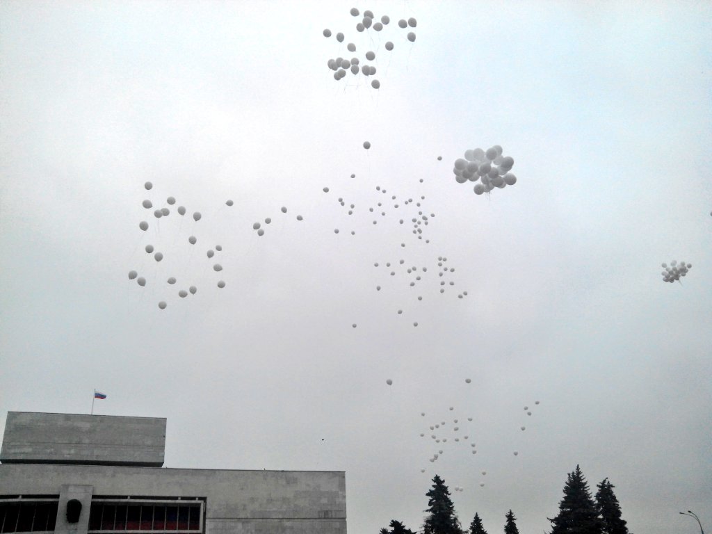 334 белых шара выпущено в небо в память о погибших во время атаки террористов на школу N1 в г.Беслан