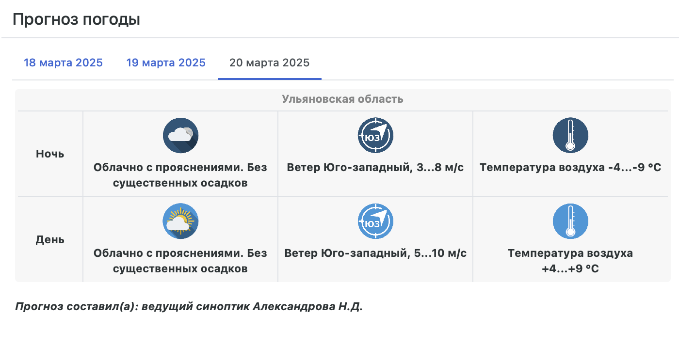 В ночные часы воздух будет охлаждаться до отрицательных значений, днем под лучами весеннего солнца существенно прогреваться.