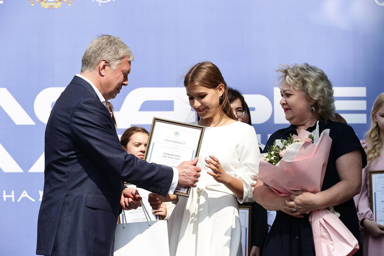 В День России губернатор Алексей Русских встретился с одаренными детьми Ульяновской области и вручил юным дарованиям в сфере культуры сертификаты на получение стипендии «Молодые таланты». «Наши ребята покорили многие престижные творческие площадки страны. Стали участниками профильных смен в «Артеке» и «Орленке». Погрузились в культурно-просветительские программы «Моя Россия – град Петров» и «Пушкин. Болдинская осень». Стали победителями регионального этапа всероссийской юношеской творческой олимпиады «Молодые дарования России». Всё это — колоссальный опыт и признание мастерства. Я благодарю вас за ваш талант, за стремление к вершинам и трудолюбие. Пусть сегодняшние награды станут мощным стимулом для новых свершений. А мы продолжим создавать для вас все условия, строить современную инфраструктуру, развивать проекты, в которых ваши таланты смогут максимально раскрыться», — подчеркнул глава региона. Десять одаренных ребят региона получили сертификаты на получение стипендии губернатора Ульяновской области «Молодые таланты». Денежное поощрение составляет пять тысяч рублей в месяц и выплачивается ежемесячно в течение девяти месяцев с сентября по май учебного года для обучающихся организаций дополнительного образования в сфере культуры и искусства. Для участия в отборе по итогам 2024–2025 учебного года было подано 60 заявок из 13 муниципальных образований региона. Победителями стали 10 человек, проявивших выдающиеся способности и показавшие лучшие результаты своего мастерства. Среди них воспитанники детских школ искусств №2 и №1 Димитровграда, детских школ искусств №2, №7, №12, №10 Ульяновска, Новоспасской детской школы искусств, Детской школы искусств №1 Чердаклинского района, Майнской детской школы искусств им. В.Н. Кашперова. Кроме того, за успехи в учебе и творческие достижения 12 одаренных детей были отобраны для поездки на Детский культурный форум, который состоится с 21 по 23 августа в Москве. Форум направлен на поддержку юных дарований, создание условий для их диалога с ведущими деятелями культуры и искусств, государственными и общественными деятелями, развитие и укрепление творческих связей, приобщение к российским и мировым достижениям в области культуры. В программу форума включены: лекции, мастер-классы, диалоги, мастерские, сессии по направлениям «хореографическое искусство», «кино и анимация», «театральное искусство», «музыкальное искусство», «музеи и изобразительное искусство», «журналистика», а также «культурные проекты», в рамках которого дети смогут реализовать свои идеи в творческие программы и представить их экспертной комиссии. Также в этот день участники мероприятия ознакомились с деятельностью Школы креативных индустрий. Данный проект создан при финансовой поддержке Министерства культуры РФ и реализован в рамках федеральной инициативы «Придумано в России». Образовательное пространство заработало в Ульяновске в 2022 году и является структурным подразделением Губернаторской детской школы искусств. С апреля 2025 года деятельность ШКИ проходит по новому адресу: ул. Красноармейская,18. Школа предлагает программы обучения по самым востребованным направлениям в сфере креативных индустрий. Срок обучения — два года на бюджетной основе для учащихся и студентов в возрасте от 12 до 17 лет. Приемна