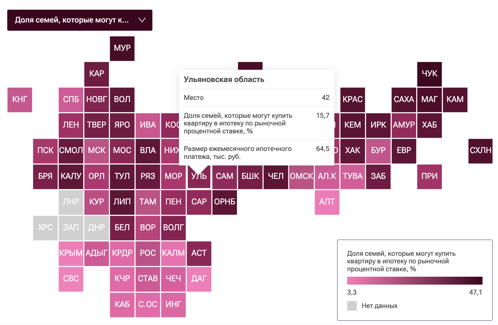 В целом по России, как отмечают аналитики, доступность ипотеки после отмены большинства льготных программ и роста ставок значительно снизилась. Если в 2018-2023 годах ипотека была доступна для 25-33% российских семей, то сейчас этот показатель упал до 16,1%, что сопоставимо с ситуацией в Ульяновской области.