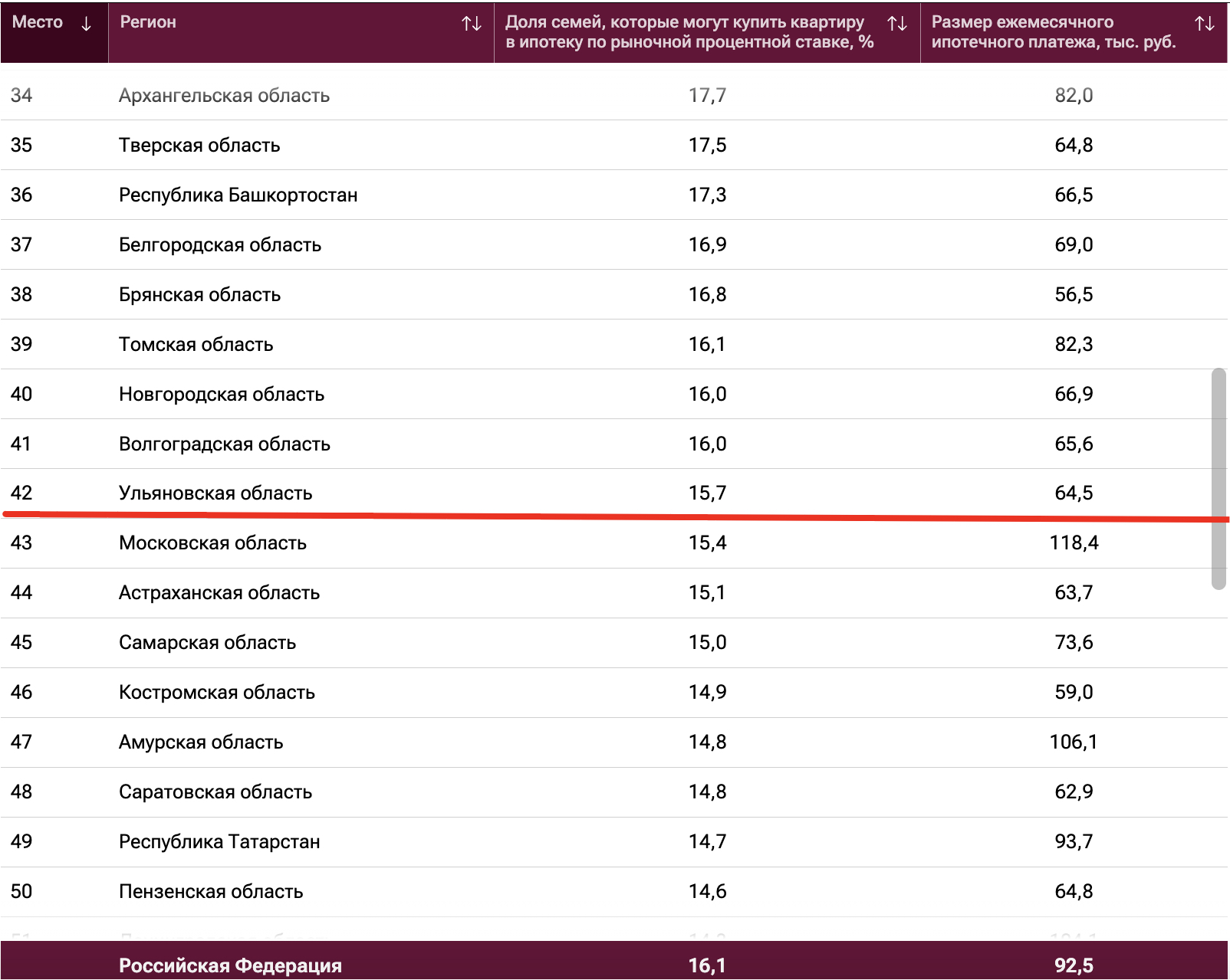 Ульяновская область расположилась на 42-м месте из 85 в свежем всероссийском рейтинге по доступности ипотеки, подготовленном агентством РИА Новости. Согласно исследованию, позволить себе покупку стандартной двухкомнатной квартиры в ипотеку по рыночным ставкам могут лишь 15,7% ульяновских семей.