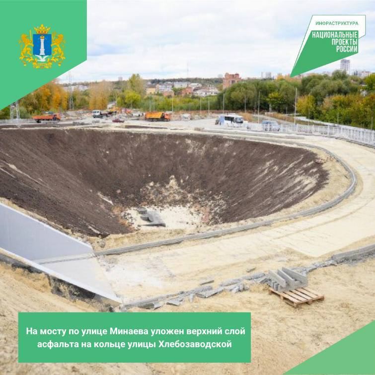 Строители уложили финишный слой асфальта на малой кольцевой развязке на улице Хлебозаводской с подходами. На съезде в сторону улицы Ульяновской также формируется основание под асфальтирование примыкания к переправе.