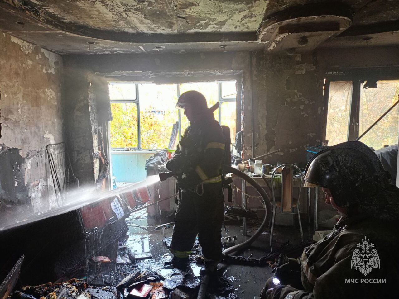 По прибытии пожарно-спасательных подразделений наблюдалось задымление на 4 этаже. 30-летний хозяин квартиры госпитализирован. На месте работали 21 специалист и 6 единиц техники.