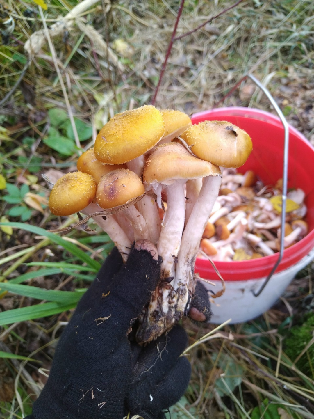За час в окрестностях Тагая можно набрать ведро опят. Эти были собраны в осиннике, в нескольких километрах вглубь от Новоникулинской дороги.