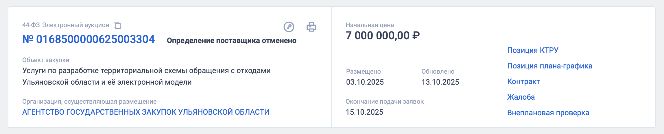 Министерство ЖКХ Ульяновской области объявило тендер на разработку новой территориальной схемы обращения с отходами Ульяновской области и ее электронной модели. Предыдущий вариант был представлен и утвержден в ноябре прошлого года. Однако по решению суда в него должны были внести коррективы: иск подала «Симбирская экологическая компания», которую ульяновские власти упорно не хотят включать в террсхему. Теперь власти готовы потратить еще 7 млн рублей на новую разработку. Возникли вопросы к ТЗАукцион на определение поставщика, который должен подготовить очередную территориальную схему обращения с отходами Ульяновской области и её электронную модель, опубликовали на сайте госзакупок 3 октября. Срок подачи заявок был довольно коротким – всего 12 дней (до 15 октября), начальная цена составила 7 млн рублей. Подготовить новую террсхему по контракту подрядчик должен до 31 мая будущего года. Финансирование будет идти из областного бюджета на 2026 год. Однако во вторник определение поставщика отменили. Заказчику поступили запросы о даче разъяснений некоторых положений извещения о закупке. Потенциальные участники попросили расшифровать ключевые требования – например, есть ли более подробное ТЗ, исходные реестры объектов, картографические данные, актуальные сведения об объектах накопления отходов и прочее, какие временные горизонты нужно рассчитать, нужно ли учитывать сезонность и прочее. Также возникли вопросы к электронной модели террсхемы. Все эти ответы заказчик представил на портале госзакупок. Комментарии в МинЖКХ, касающиеся разработки новой террсхемы, на момент публикации статьи не представили. Сегодня в министерстве пройдет совещание, где обсудят этот вопрос – после этого нам пообещали прислать пояснения (сразу же опубликуем). Судебная «Санта-Барбара»Это далеко не попытка подготовить и принять террсхему обращения с ТКО за последние годы. Ее предыдущие варианты были признаны недействующими по искам ООО «Симбирская экологическая компания». Хроника противостояния «СимбЭКа» с властями такова. По соглашению с региональными властями, ООО начало строить полигон для размещения отходов в Новоспасском районе. В 2017 году «Симбирская экологическая компания» подала первый иск о признании разработанной годом ранее террсхемы недействующей и дошла до Верховного суда. Причина – то, что в документе не были учтены интересы «СимбЭКа». Компания завершила строительство полигона и сортировочной станции, которые не включили в схему. Но зато в ней был кузоватовский полигон «Уют», который фактически исчерпал свой ресурс, а также баратаевский полигон, расположенный с нарушением закона – недалеко от аэропорта. Это стало поводом для обращения в суд. В январе 2024-го Министерство ЖКХ и строительства опубликовало новый проект, где был указан новый объект в Новоспасском районе, который хотела построить самарская «Межрегиональная экологическая компания» – комплекс по утилизации ТКО. МЭК являлся регоператором в пятой зоне. Полигон «СимбЭК» рассматривали лишь в качестве перспективного, при условии утверждения предельного тарифа на обработку и захоронение отходов. В октябре прошлого года МинЖКХ лишило МЭК статуса регоператора. Причиной были названы проблемы с вывозом и утилизацией мусора. В обновленной версии террсхемы (ее вынесли н