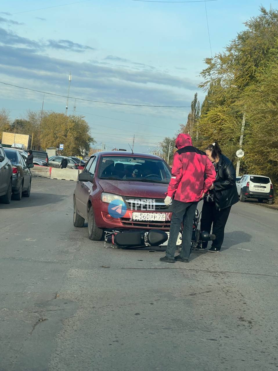 Как сообщают очевидцы в социальных сетях, авария произошла на пешеходном переходе. По предварительной информации, пострадавший курьер получил ушибы. О госпитализации не сообщается.
