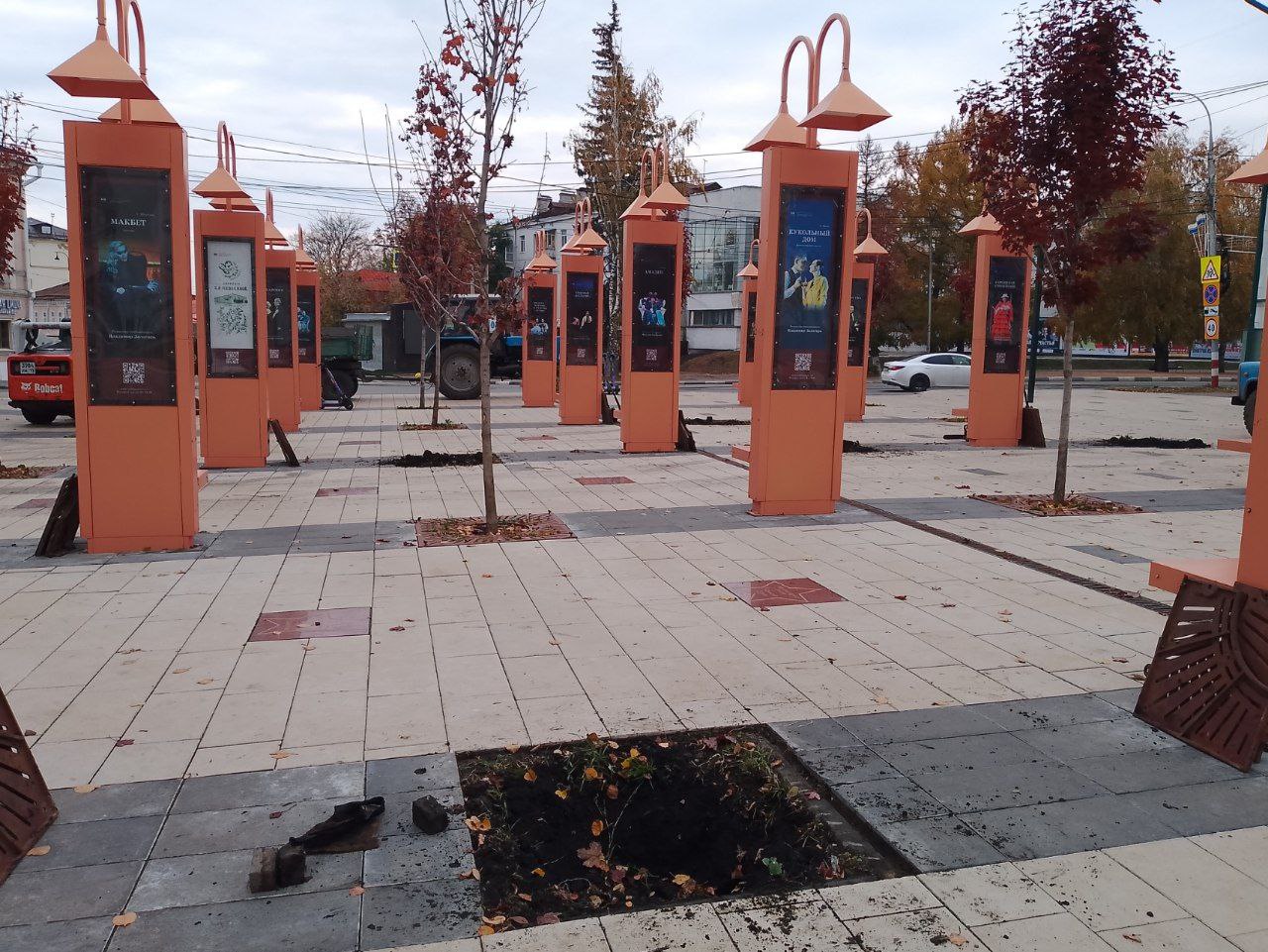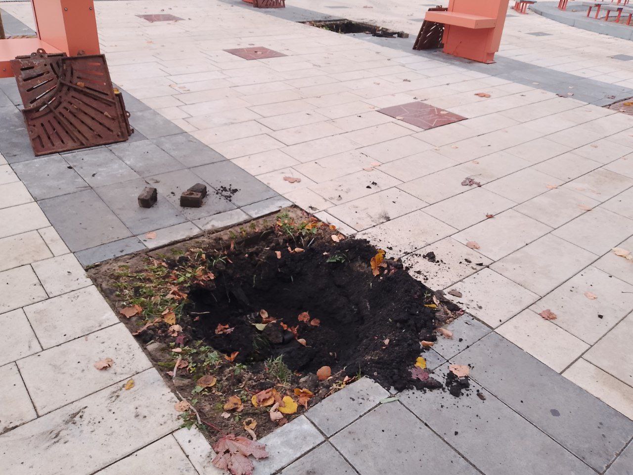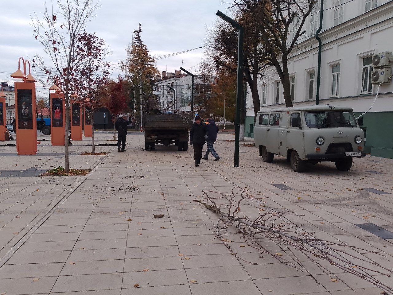 Сегодня в Театральном сквере начали менять не прижившиеся красные клёны.