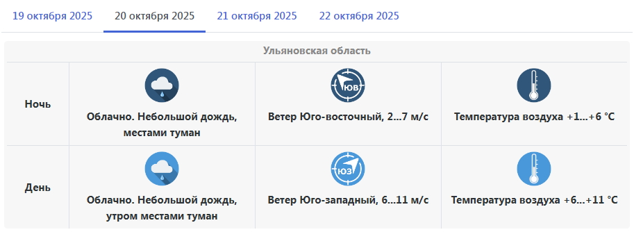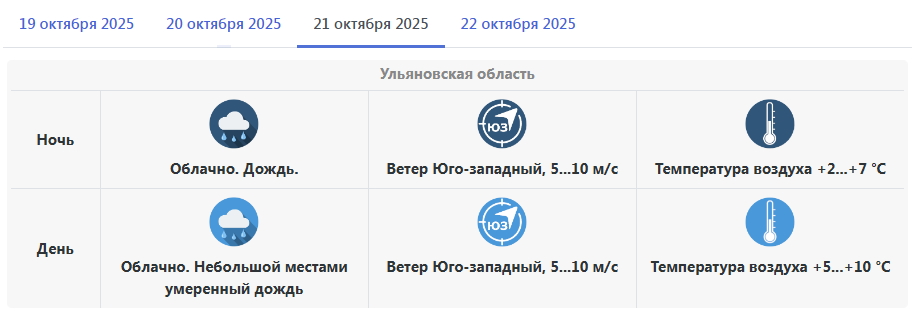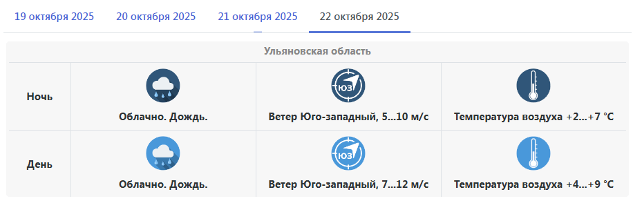 По прогнозу Гидрометцентра, в начале следующей рабочей недели территория Ульяновской области будет находиться под влиянием ложбины циклона. Облачность будет нарастать, ожидается дождь различной интенсивности. Температурный фон ожидается в пределах нормы.