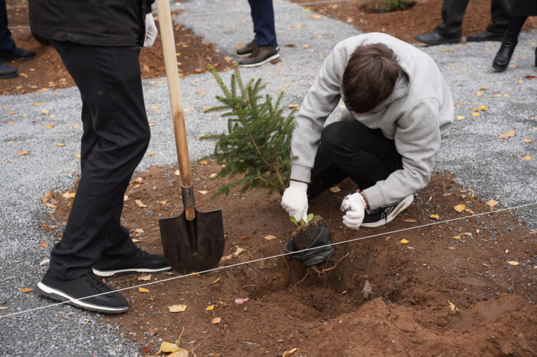 На территории учреждения в память о воспитанниках школы, принимавших участие в специальной военной операции, высадили 10 саженцев ели.