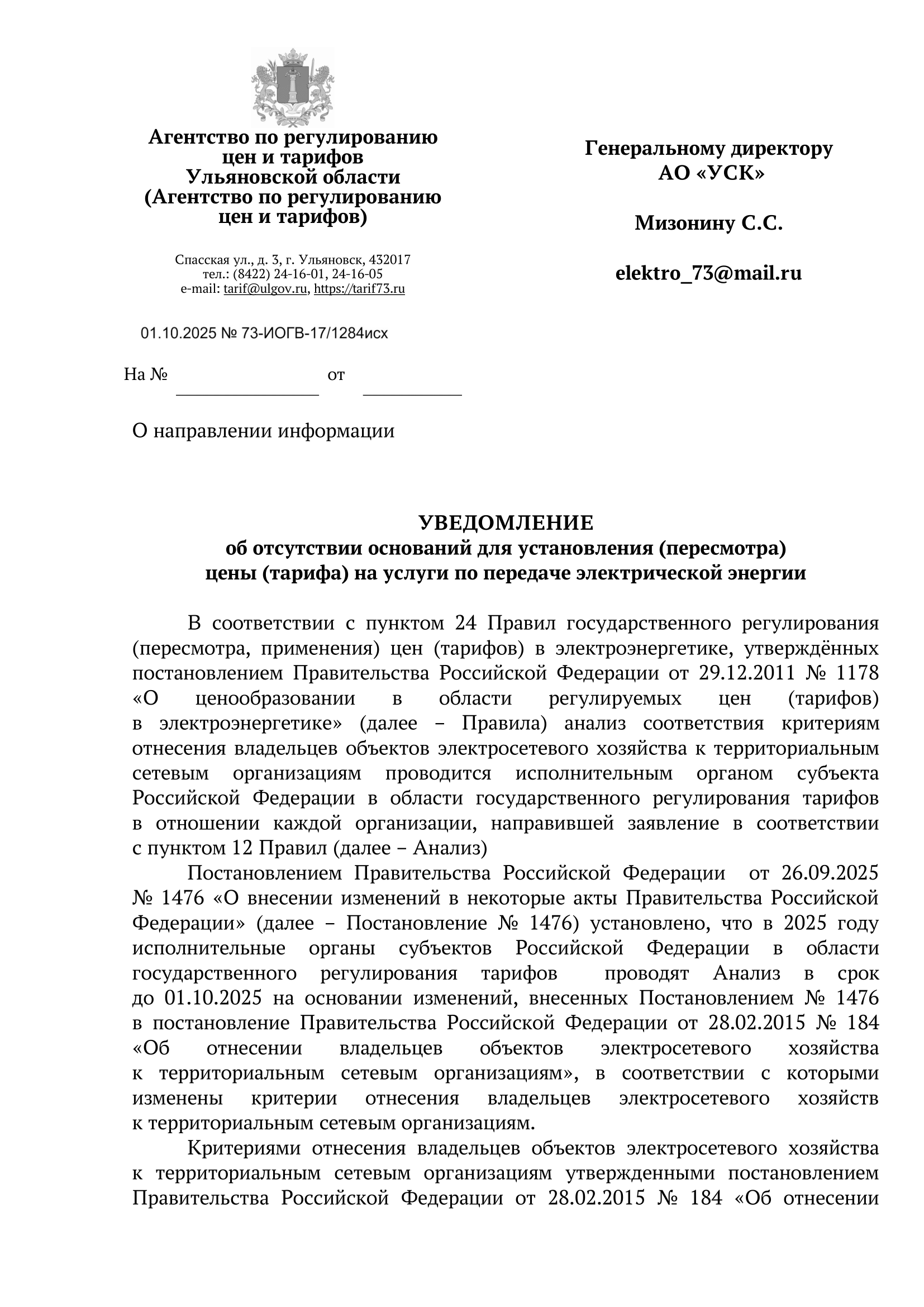 Почему получилось так, что сетевая компания, которая, по идее, должна приносить прибыль бюджету, оказалась властям не нужна? Руководитель Агентства по тарифам Ульяновской области Галина Добровольская объяснила, что правительство РФ с 2023 года ужесточает требования к территориальным сетевым компаниям (ТСО). В том году УСК еще имела этот статус, но с 1 января 2026 года его лишится. Это означает, что предприятие не сможет получать деньги за транспортировку электроэнергии – то есть, останется без заработка.