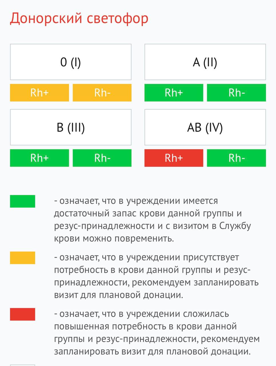 В Ульяновске возникла острая потребность в донорах с четвертой положительной группой крови — AB (IV) Rh+. Об этом свидетельствуют данные «донорского светофора», отражающего текущие запасы компонентов крови. Станция переливания крови обращается ко всем неравнодушным жителям, имеющим данную группу, с просьбой прийти и сдать кровь.