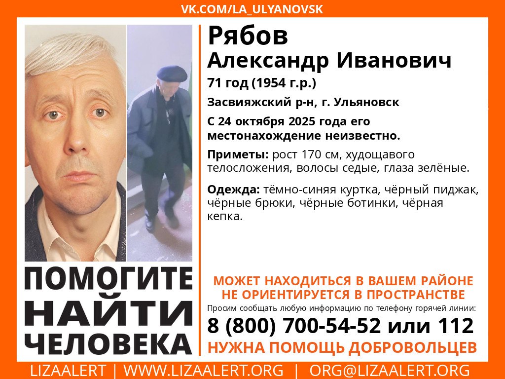В Ульяновске волонтеры поискового отряда «Лиза Алерт» и полиция разыскивают 71-летнего Александра Ивановича Рябова. Мужчина пропал 24 октября в Засвияжском районе города.