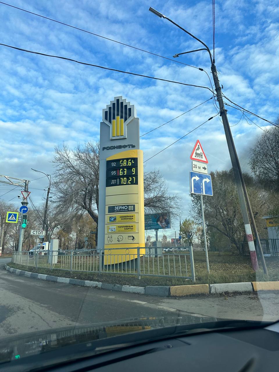 Роснефть: АИ-92 — 58,64 ₽, АИ-95 — 63,00 ₽, Дизель — 70,27 ₽.