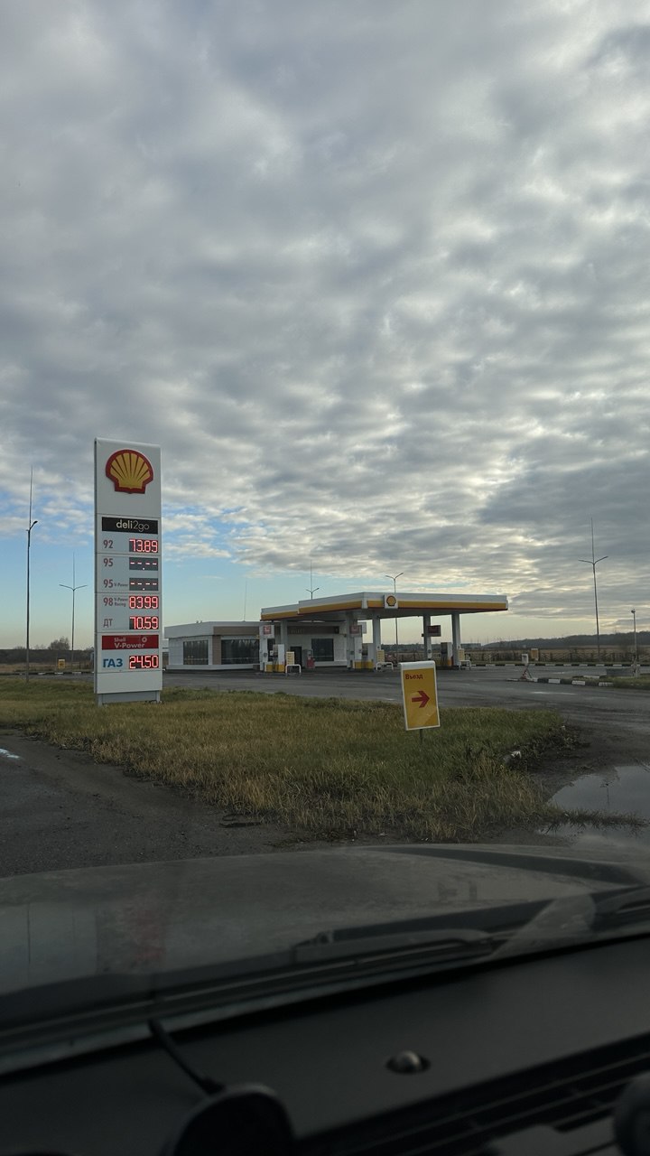Shell: АИ-92 — 73,89 ₽, АИ-95 — нет, АИ-98 — 83,99 ₽, Дизель — 70,59 ₽.