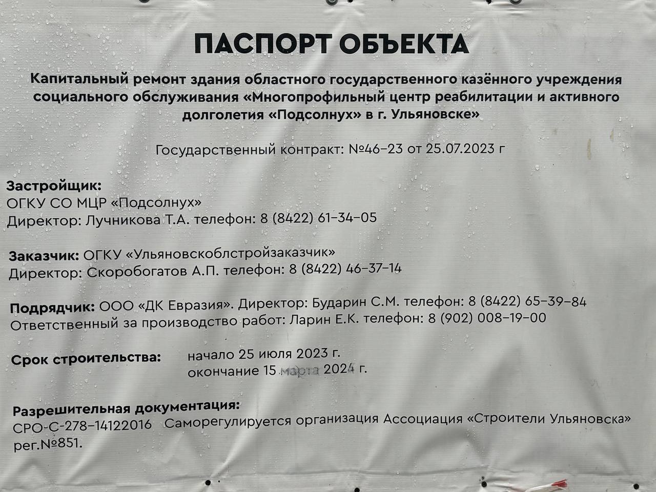 Сроки капитального ремонта нового корпуса реабилитационного центра «Подсолнух» в Ульяновске сорваны на несколько месяцев. Несмотря на сентябрьскую проверку с участием зампреда правительства и прокурора региона, подрядчик так и не ускорил работы, а ситуация на объекте вызывает серьезную тревогу.