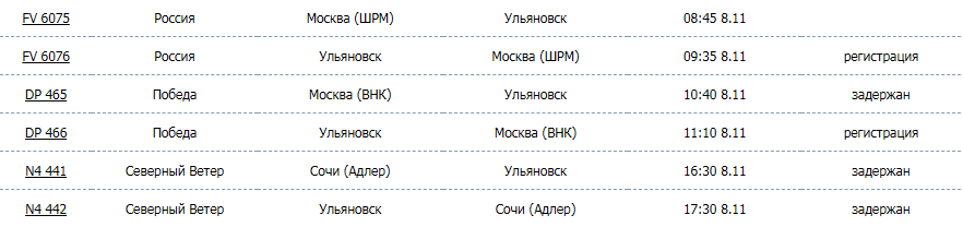 Напомним, сегодня в 8 часов утра в аэропорту Ульяновска (Баратаевка) в целях обеспечения безопасности полетов введены временные ограничения на прием и выпуск воздушных судов. Согласно данным онлайн-табло аэровокзала, задержаны рейсы авиакомпании «Северный Ветер» из Сочи в Ульяновск и обратно, рейс «Победы» из Москвы, не указан статус рейса авиакомпании «Россия».