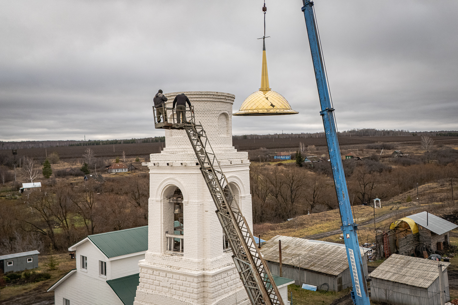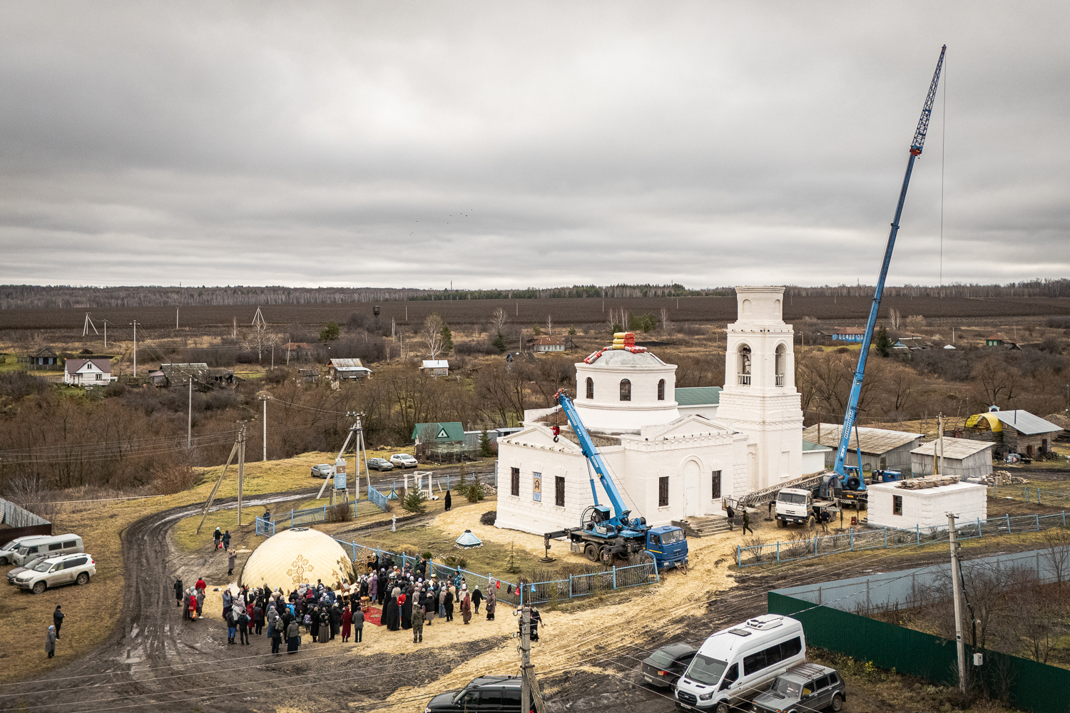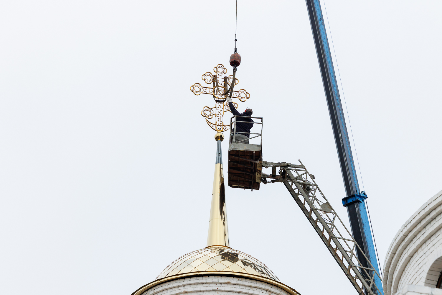 После освящения начались работы по установке куполов и крестов на основное храмовое здание и колокольню.