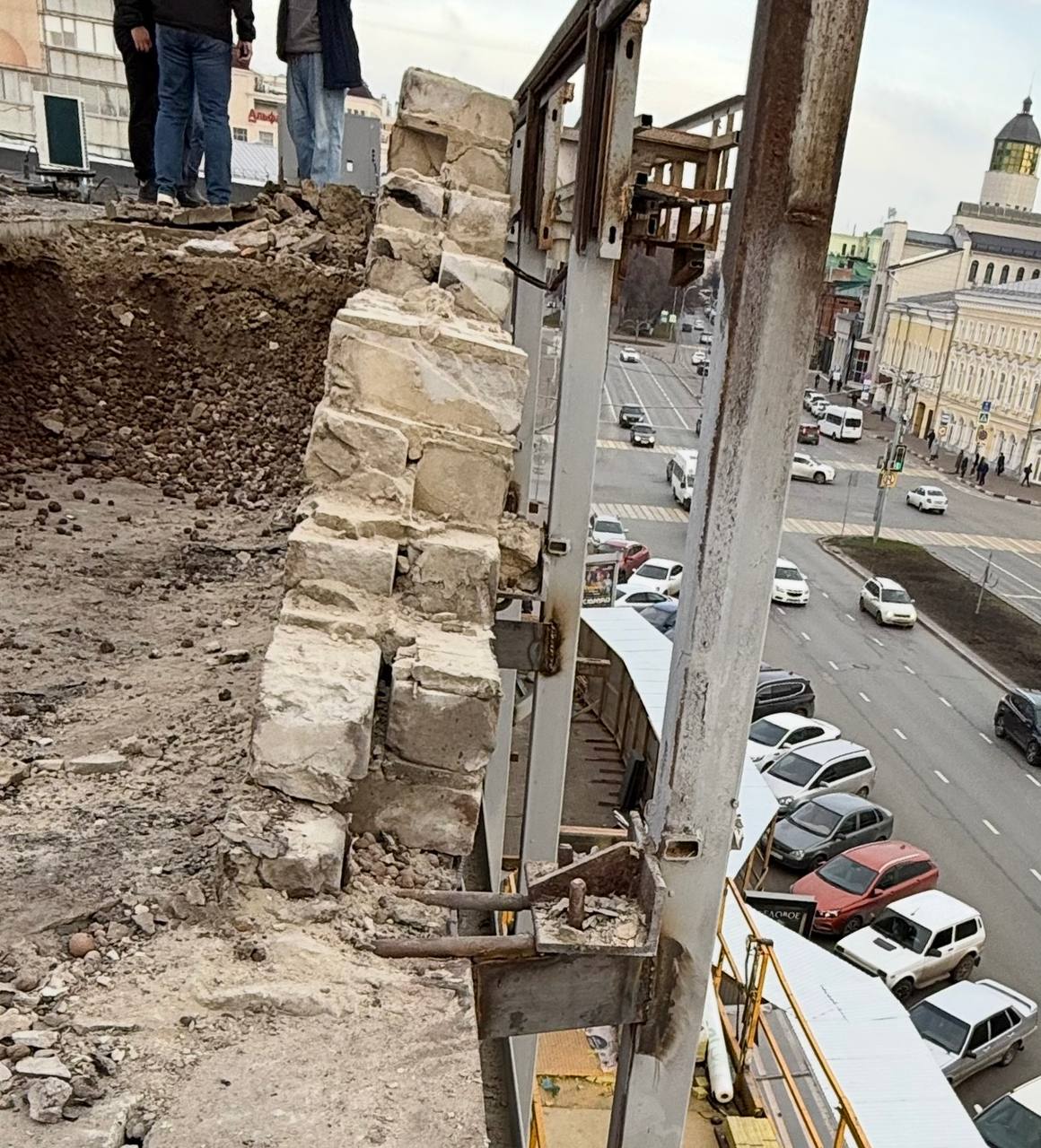Как выяснилось, в ходе планового демонтажа старых рекламных конструкций открылась критическая ситуация с парапетом на крыше здания. По словам владельцев, кирпичная кладка, возведенная еще при строительстве ЦУМа, находилась в полуразрушенном состоянии и имела опасный крен до 20 градусов в сторону тротуара.