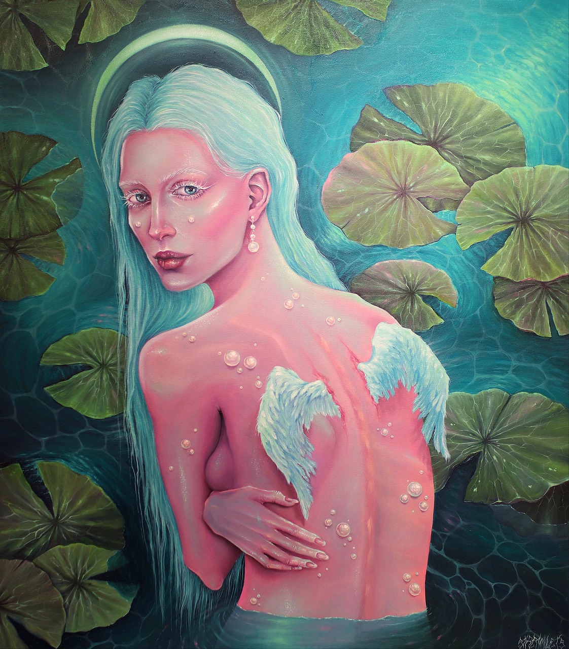 – Эта картина — о возвращении к себе, обретении женственности и доверии внутреннему свету. Когда я её создавала, действительно представляла, как свет проходит через кожу. Поэтому отблески, которые ты увидела в образах, — не случайны. Я сознательно работала с полупрозрачными переливами тканей, с формой и оптическим блеском, чтобы передать это ощущение пробуждения внутренней силы.