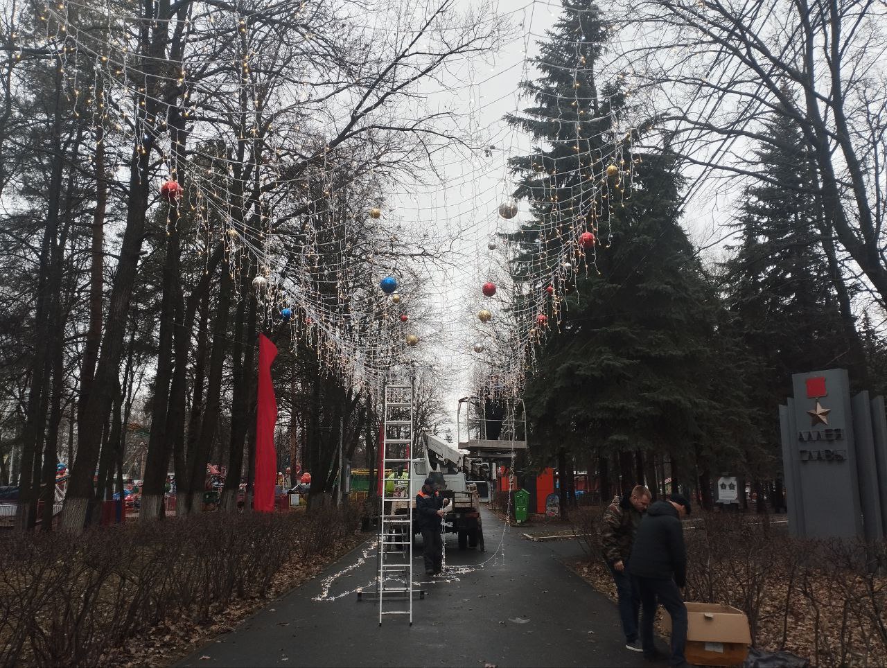 Как сообщили в администрации города, в парке устанавливают световой потолок и развешивают ёлочные шары. Эти работы являются частью большого плана по созданию праздничной атмосферы во всех городских парках и скверах.