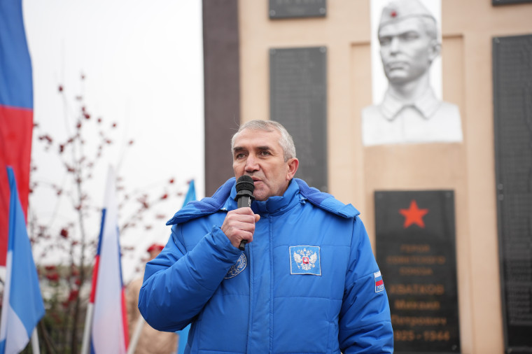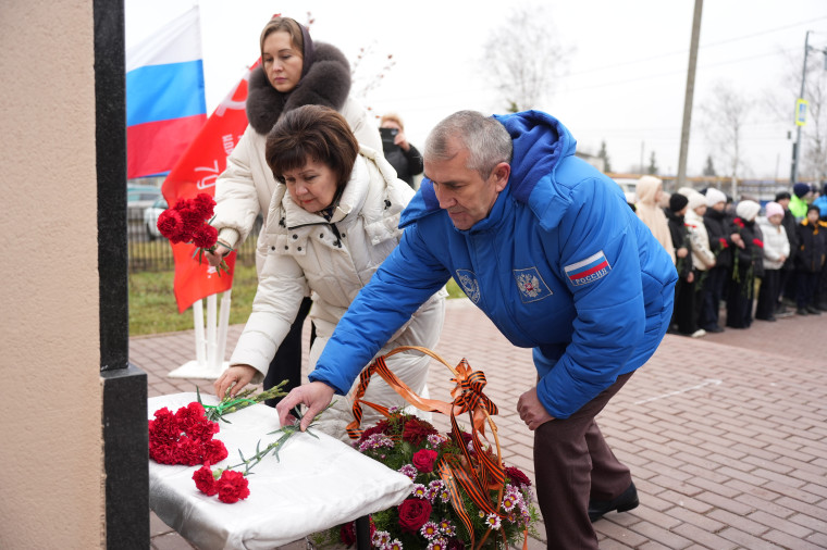 После торжественного выноса Государственного Флага и копии Знамени Победы членами патриотического движения Юнармия они возложили цветы к бюсту Героя СССР, а также гашение специальным почтовым штемпелем конверта, выпущенного почтой России к 100-летию со дня рождения Михаила Хваткова.