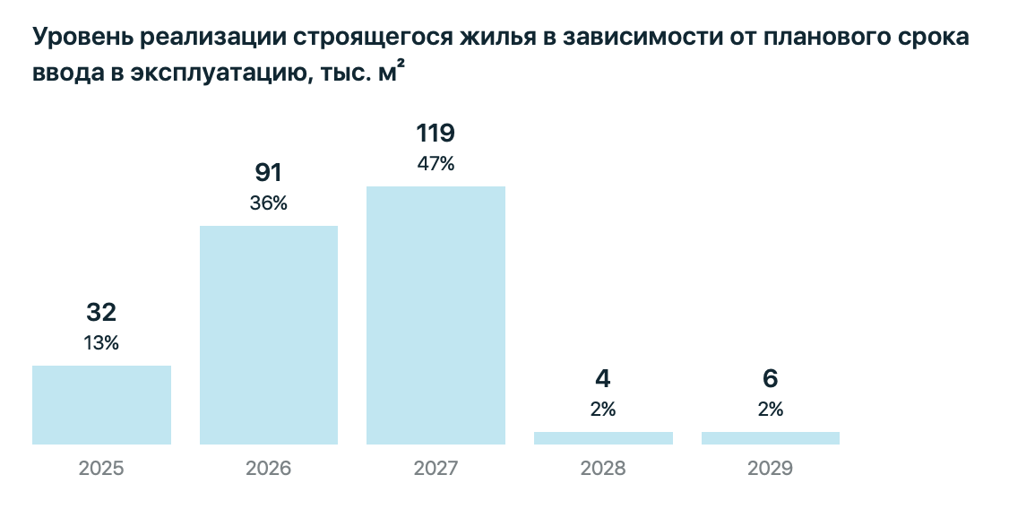 По данным Единой информационной системы жилищного кредитования на октябрь, объем нереализованного нового жилья в России в целом составил 45%. В Ульяновской области за последние месяцы этот показатель колебался, но не падал ниже 50%. Данные Дом.РФ по Ульяновской области за октябрь 2025 годаНераспроданная площадь в строящихся домах в Ульяновской области (2025 год)