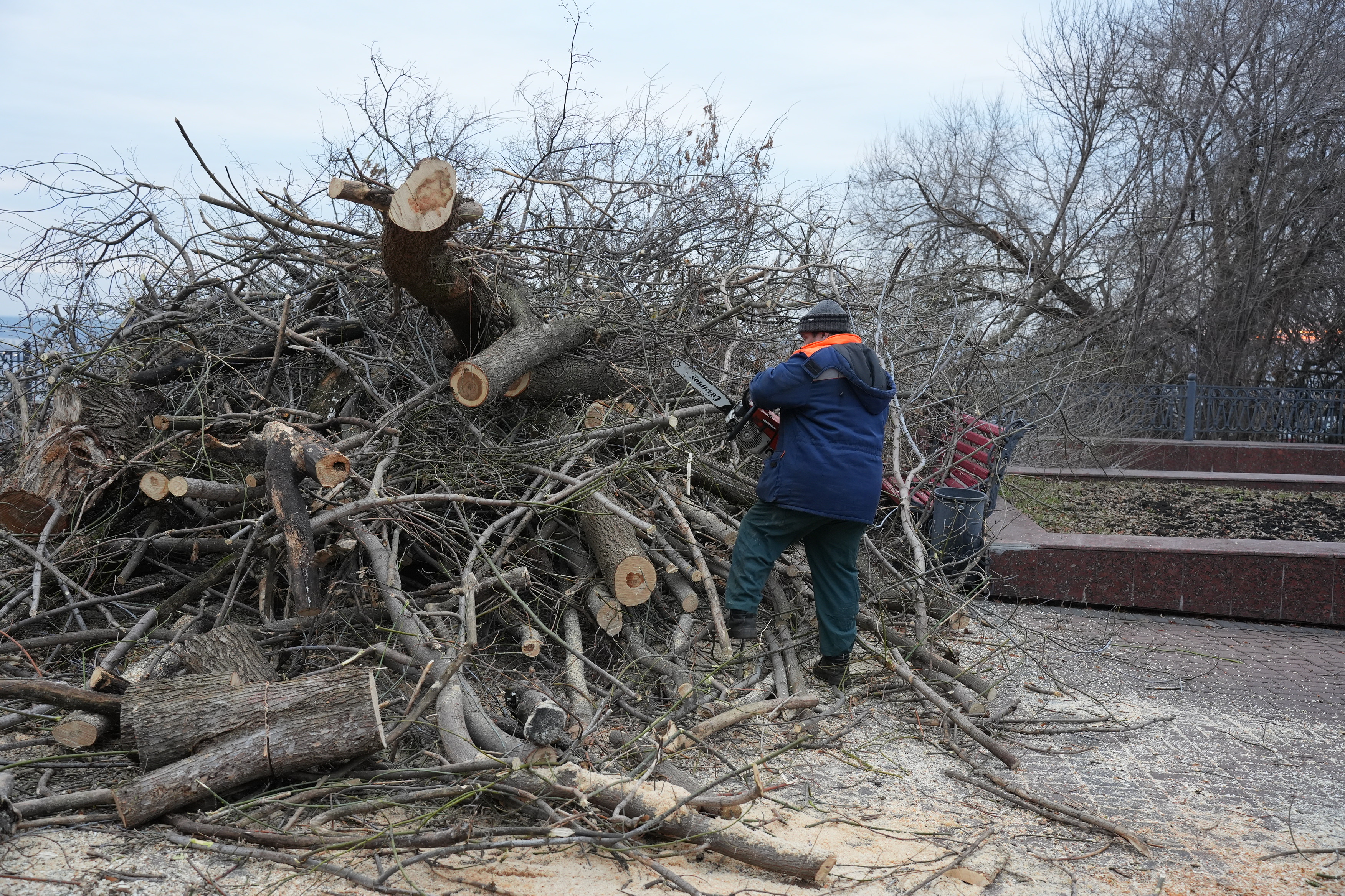 — Все ценные породы деревьев, произрастающие ниже по склону, в парке, мы не трогаем. Убираем только дикорастущие американский клён и карагач – сорные деревья. С начала месяца спилено 168 аварийных деревьев, от поросли расчищено свыше тысячи квадратных метров поверхности, вывезено порядка ста кубометров порубочных остатков, – сообщил заместитель директора МБУ «Городской центр по благоустройству и озеленению» Рустам Хайруллов.