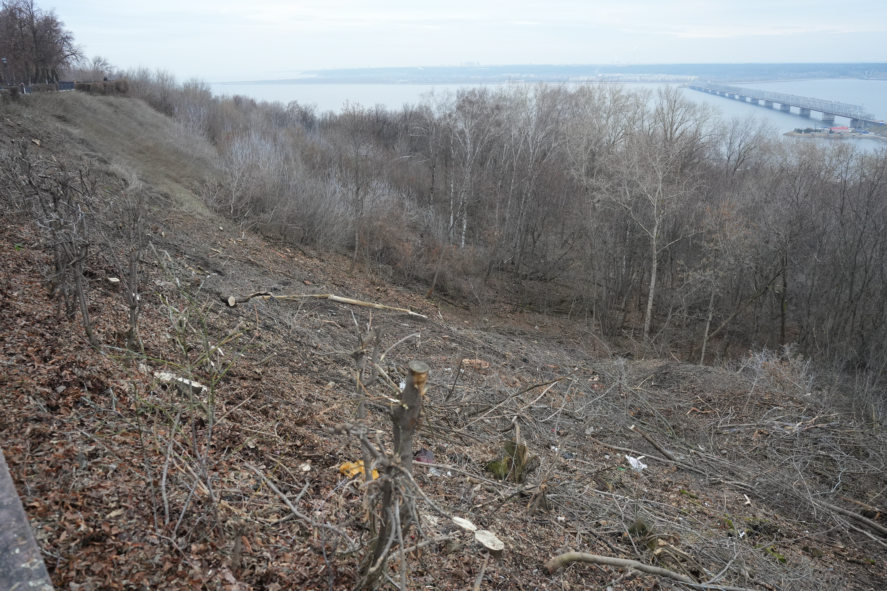 Расчистка косогора на участке от памятника основателю Симбирска Богдану Хитрово до здания филармонии производится по инициативе главы города Александра Болдакина, благодаря чему с бульвара Новый Венец вновь открывается вид на Волгу.