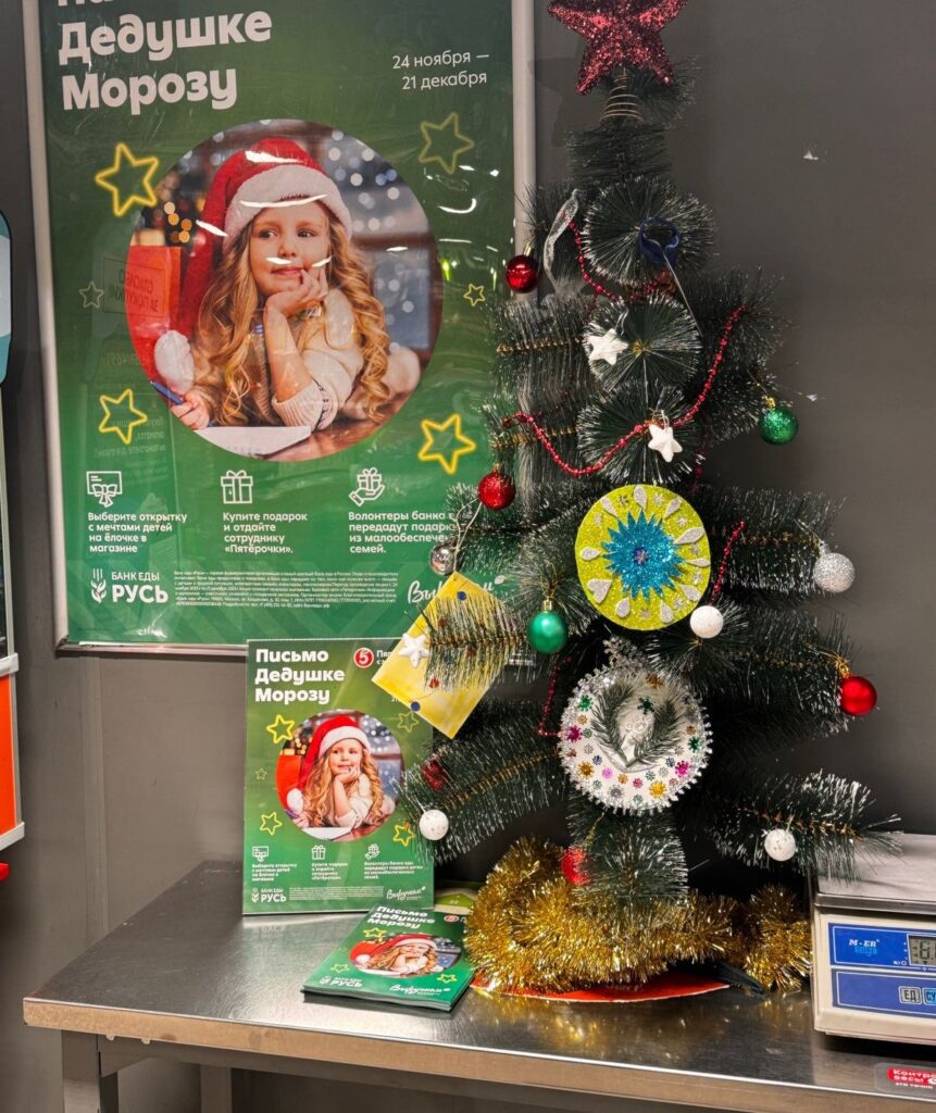 Многие горожане уже наверняка заметили, что в магазинах «Пятёрочка» установили новогодние ёлки с украшениями-открытками. В каждой из них – ожидание чуда: дети разных возрастов делятся с Дедушкой Морозом, какой подарок они мечтают получить в канун праздника. Для кого-то это сладости, для других – игрушки, наборы для творчества, книги и многое другое.