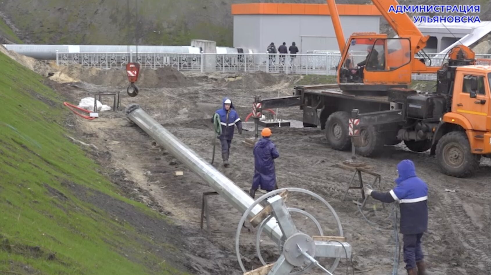 Сегодня, 28 ноября, возле большой кольцевой развязки со стороны улицы Ульяновская с помощью крана была установлена и подключена к электричеству 25-метровая мачта освещения, на которую следом прикрепят светильники: