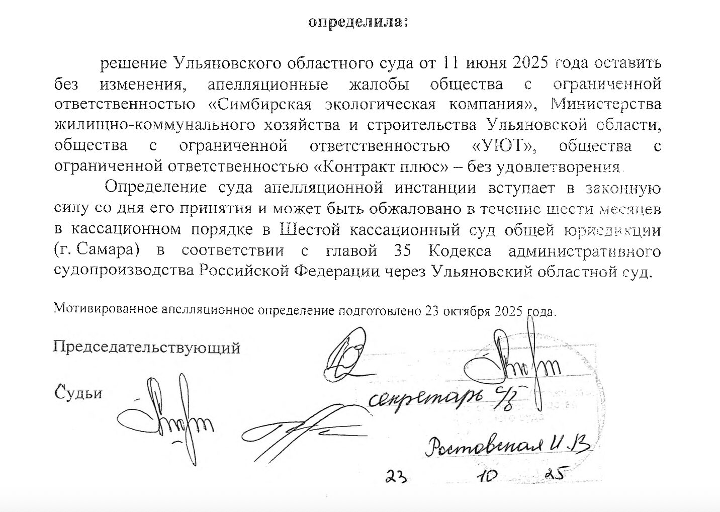 Ульяновской области грозит мусорный коллапс. Суд признал незаконной работу двух объектов размещения отходов – Большеключищенского полигона и полигона ООО «Уют» в Кузоватово, расположенных в зонах №2 и №5 террсхемы, принятой в регионе. Куда теперь возить ТКО из двух районов Ульяновска, Новоульяновска и восьми сельских районов области – непонятно. Разработанная МинЖКХ резервная схема оказалась нежизнеспособной. В Новоспасском есть новый полигон компании «СимбЭК», но речи о его использовании пока не идет. Проблему рассмотрели на комитете в Общественной палате Ульяновской области, где выяснилось множество интересных нюансов. Что произошло?Напомним предысторию. Последний вариант территориальной схемы обращения с отходами Ульяновской области был представлен и утвержден в ноябре 2024 года. «Симбирская экологическая компания», которую ульяновские власти упорно не хотят включать в террсхему (хронику противостояния Улпресса подробно описывала ранее), подала иск в суд с требованием признать недействующими включенные в террсхему приложения, описывающие места нахождения объектов размещения отходов и схемы их потоков (включая резервную и перспективную). По мнению «СимбЭКа», в принятой террсхеме содержится множество нарушений. Например, нет инвестпрограмм, заключения госэкспертизы проектной документации по полигонам и прочее. В итоге в июне 2025 года Ульяновский областной суд частично удовлетворил требования истца. Министерству ЖКХ и строительства Ульяновской области предписали исключить из террсхемы два полигона.