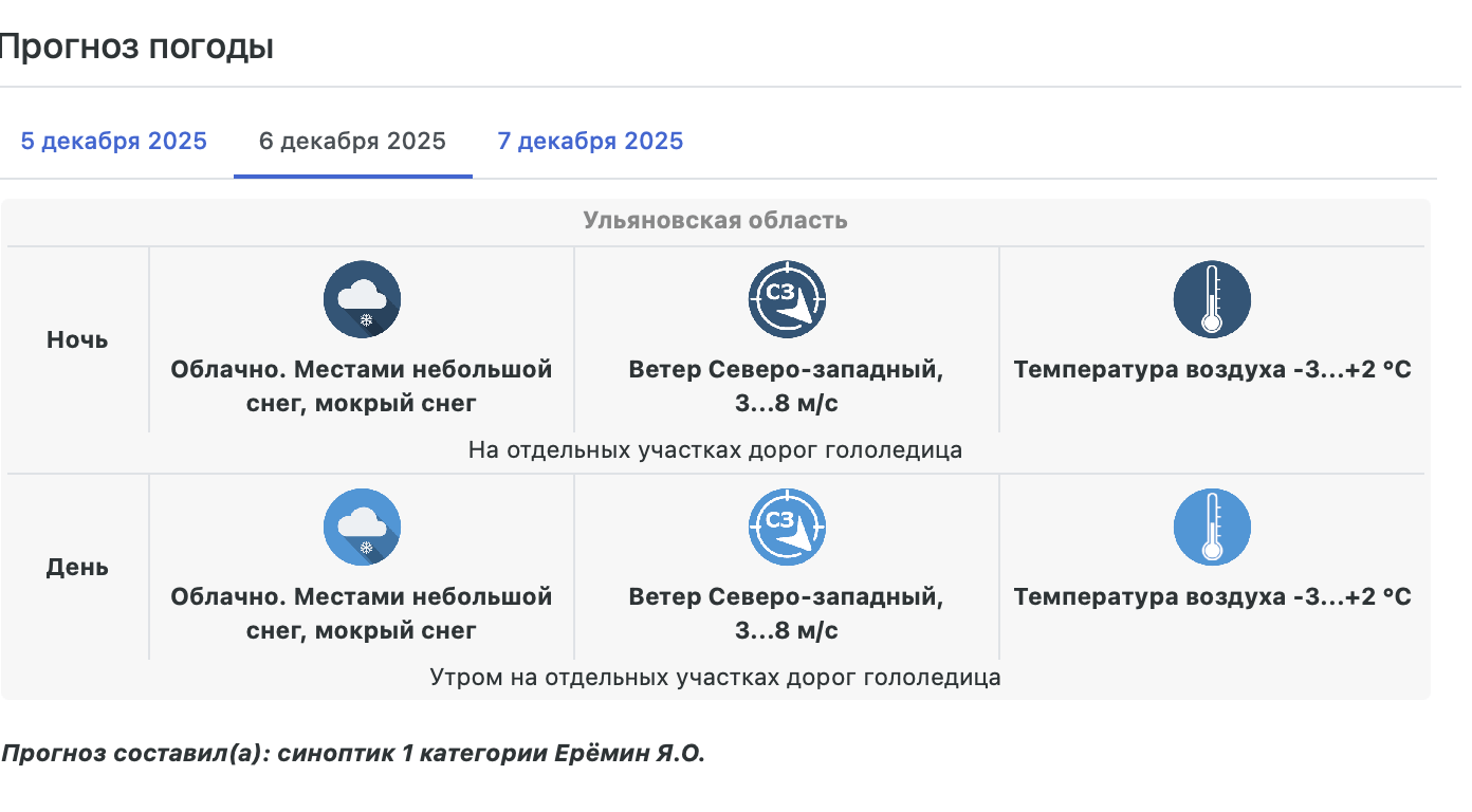 Небольшой снег и мокрый снег на территории Ульяновской области ожидается в эти выходные, 6 и 7 декабря.