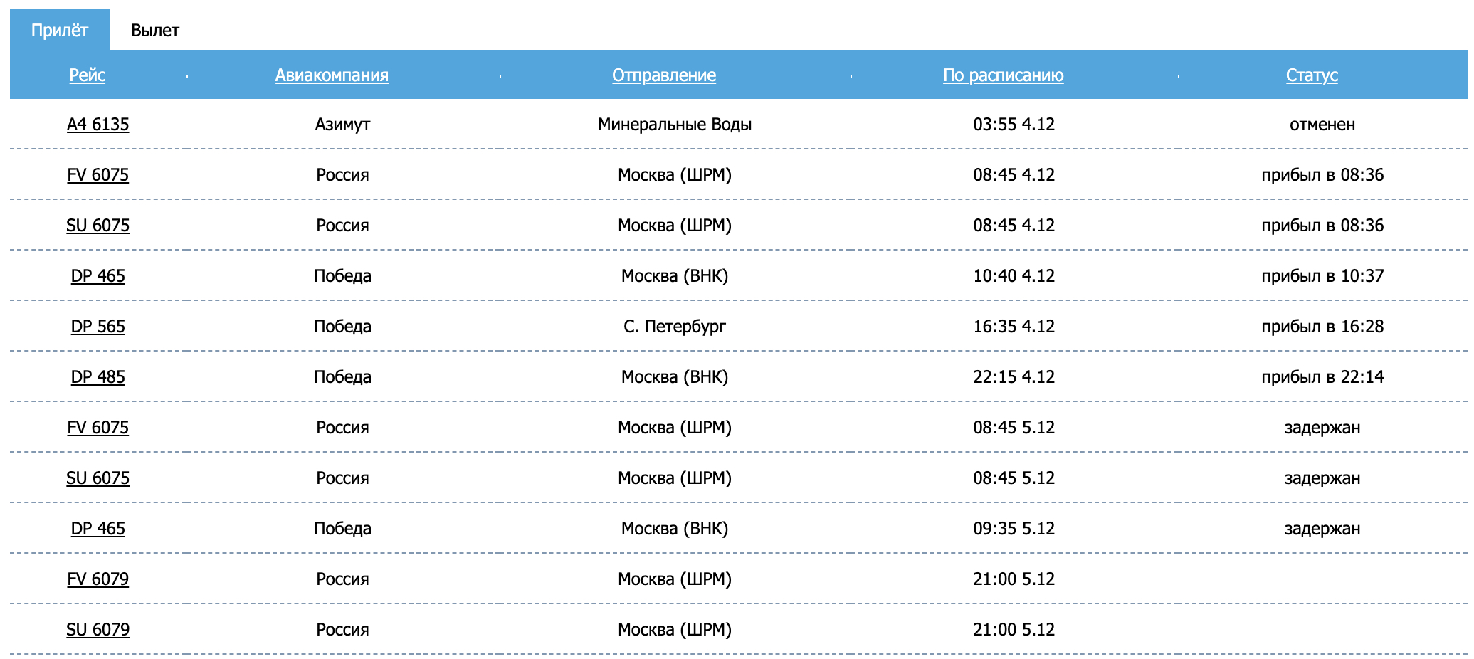 — Рейс FV 6075 из Москвы (Шереметьево), который должен был прибыть в 08:45, — задержан.