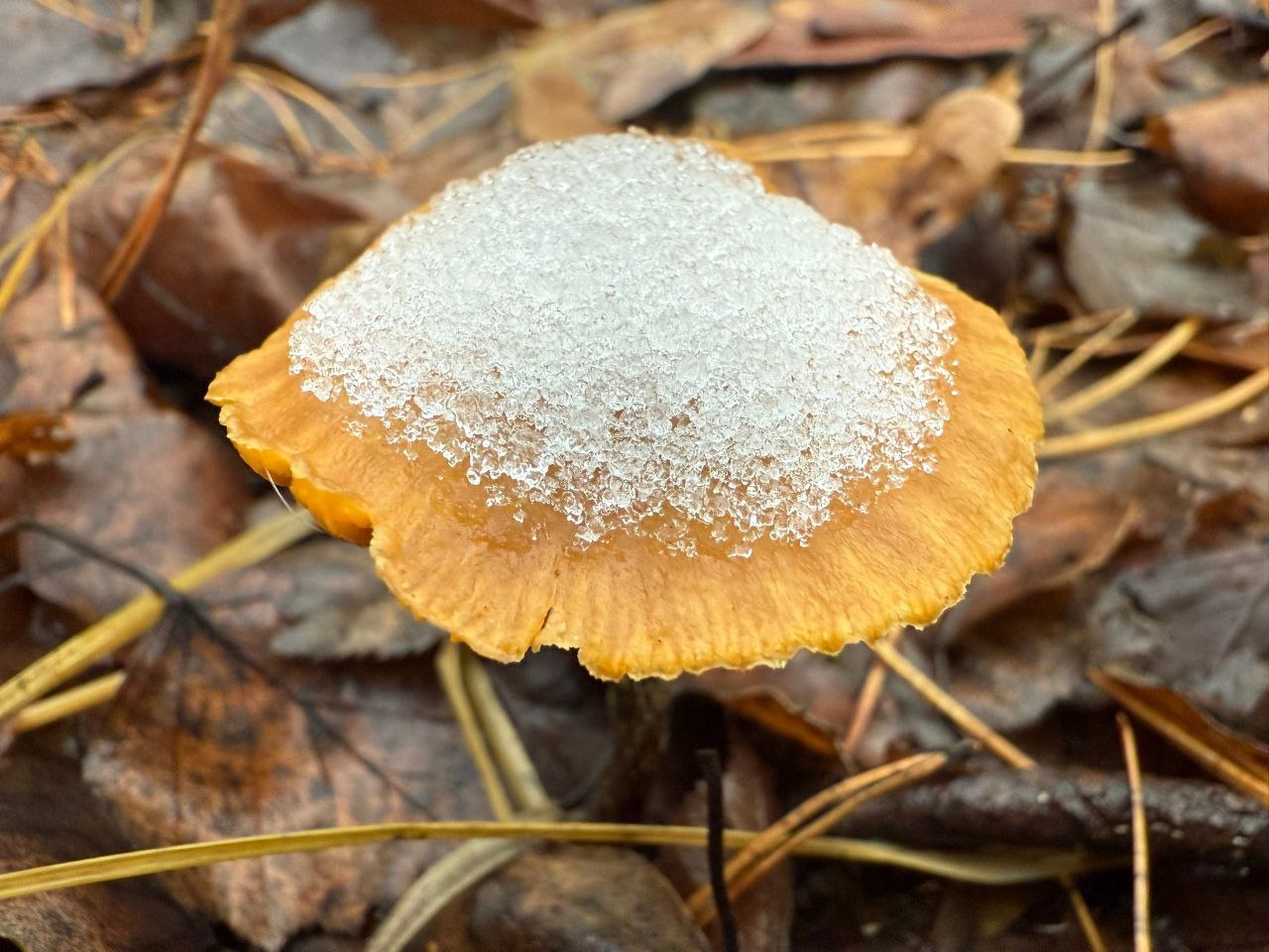 В нацпарке Сенгилеевские горы, несмотря на наступление календарной зимы, до сих пор встречаются опята, зеленая трава, местами продолжают цвести отдельные растения.