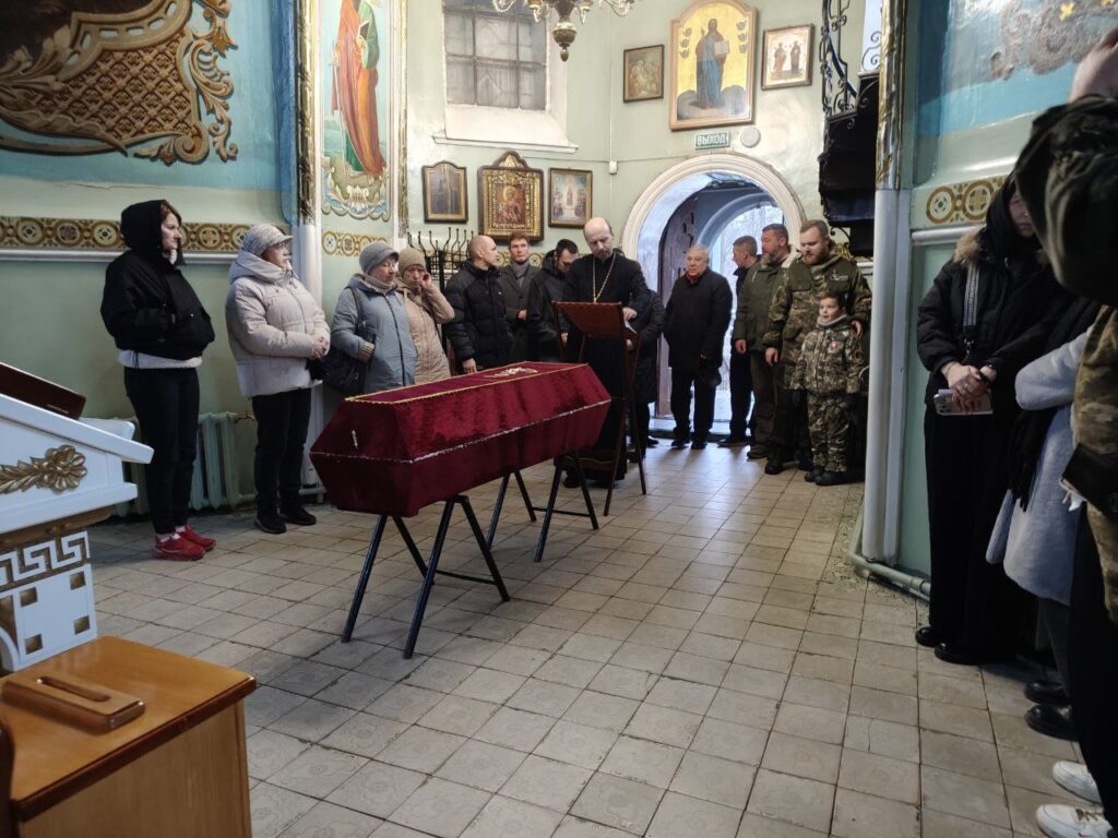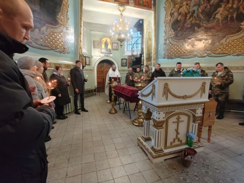 На заупокойном богослужении присутствовали родственники воина, участники поисковых отрядов, представители управления по делам молодежи администрации города и руководитель епархиального молодежного отдела Сергей Николаев.