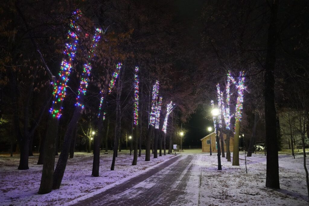 Новогоднее оформление разместили и в городских парках: в парке «Победы» установили световой потолок, а в «Прибрежном», «Молодёжном» и «Семье» — праздничные ели.