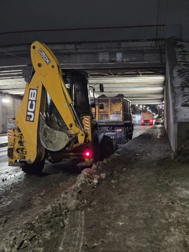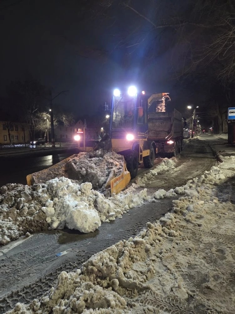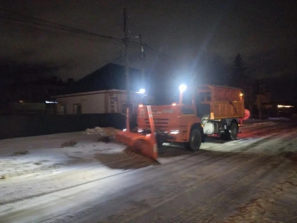 Колонну из пяти дорожных машин направили минувшей ночью на сгребание снега и подметание проезжей части улиц Заволжья.