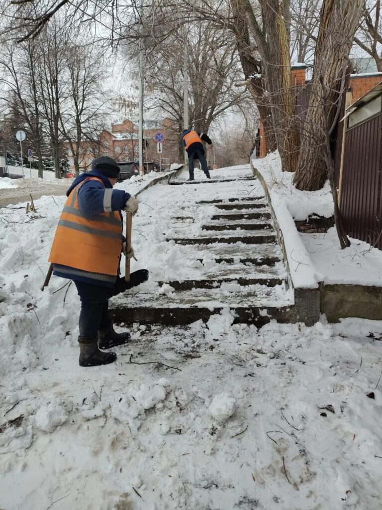 Во всех районах города велась очистка от снега остановок, заездных карманов и пешеходных переходов, подметание дорожного полотна, в том числе в пригородной зоне и кварталах многодетных семей. На Минаева и Аблукова приводили в порядок мостовые переходы.