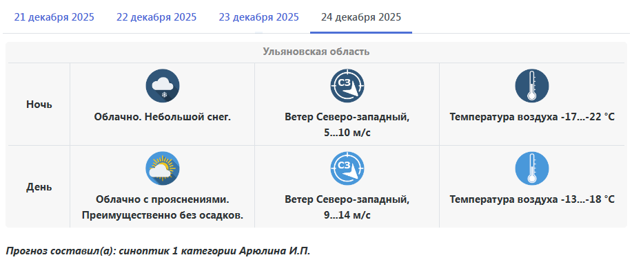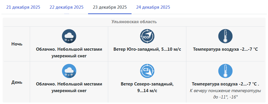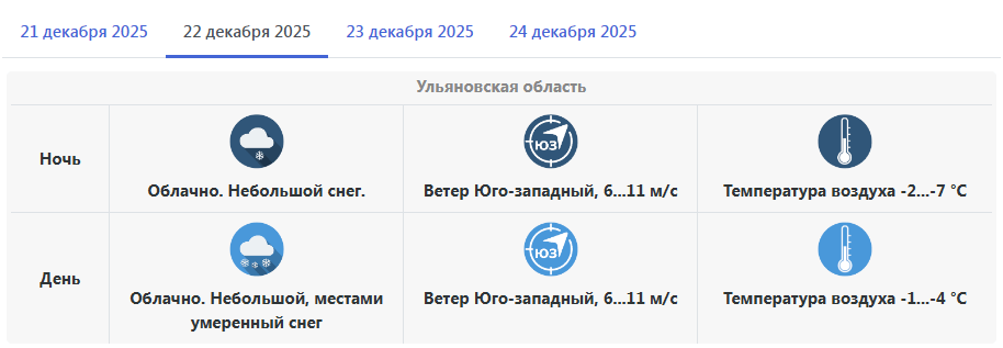 По прогнозу Гидрометцентра, в начале рабочей недели территория Ульяновской области окажется под влиянием очередного атлантического циклона, повсеместно ожидается снег различной интенсивности. К середине недели ночная температура опустится до -17, -22 градусов.
