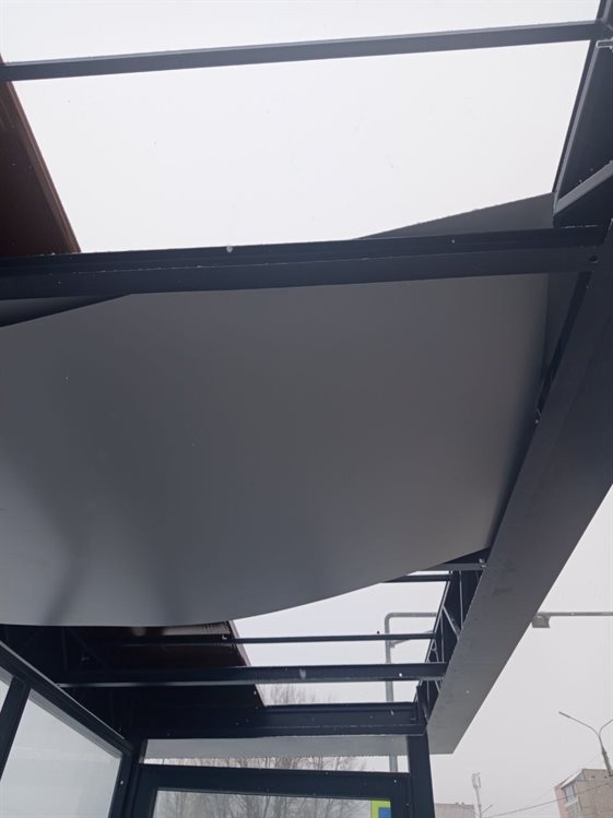 Неизвестные выломали два листа обшивки и повредили крышу конструкции. Специалисты отмечают, что если раньше злоумышленники ограничивались разбитыми стеклами, то теперь наносят более серьезный урон.