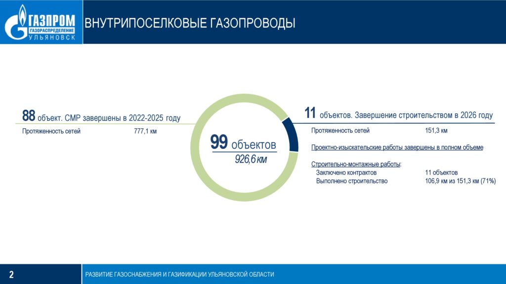 Программа 2021-2025 годов стала мощным инфраструктурным рывком. Невыполненные из-за технических сложностей объемы (два межпоселковых и 11 внутрипоселковых газопроводов) перешли в новую программу на 2026-2030 годы, где для них определены четкие сроки сдачи. Работы по догазификации продолжаются в плановом режиме, рисков срыва сроков нет.