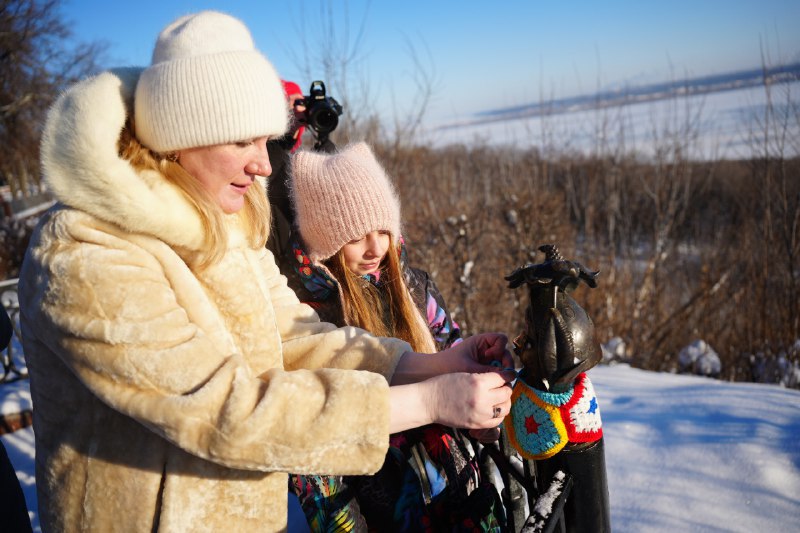 В Ульяновске туристические скульптуры колобков-гидов, установленные на бульваре Новый Венец, преобразились к зиме. Инициативу по утеплению популярных арт-объектов проявила многодетная семья Витковских.
