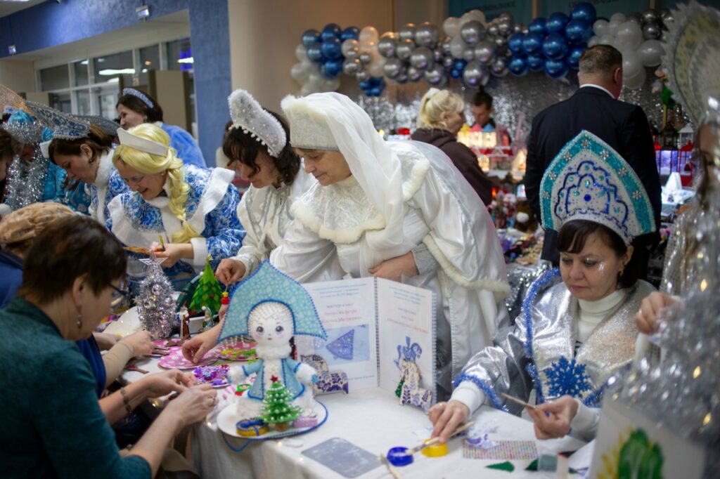 В фойе первого этажа работали тематические площадки: «Мастерская Снегурочки» по созданию новогодних сувениров с элементами национального орнамента; «Новогодняя творческая» для знакомства с традициями и приметами встречи Нового года у разных народов России; фотозона «Наш Новый год»; площадка национальных периодических изданий с возможностью подписки и проведением «Этновикторины», а также интерактивная выставка «Новогоднее настроение с книгой» от Дворца книги.