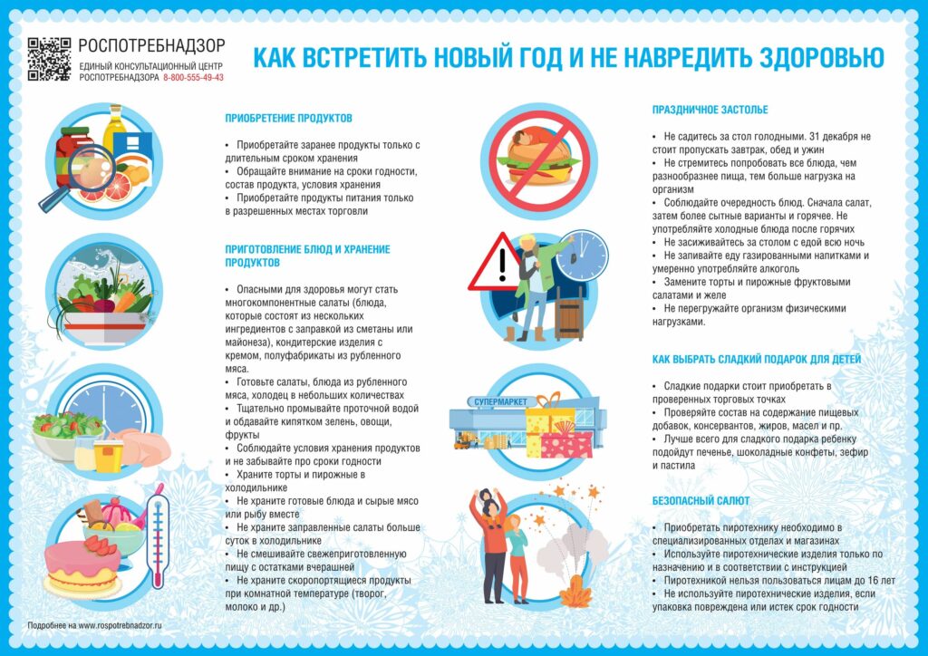 Безопасное приготовление и хранение праздничных блюд — залог здоровья и хорошего настроения в новогодние каникулы. Соблюдение простых правил гигиены, правильное обращение с продуктами, поддержание оптимальных условий хранения — это необходимые условия для того, чтобы праздник прошел без вреда вам и вашим близким. Пусть праздничное застолье будет радостным, вкусным и безопасным!