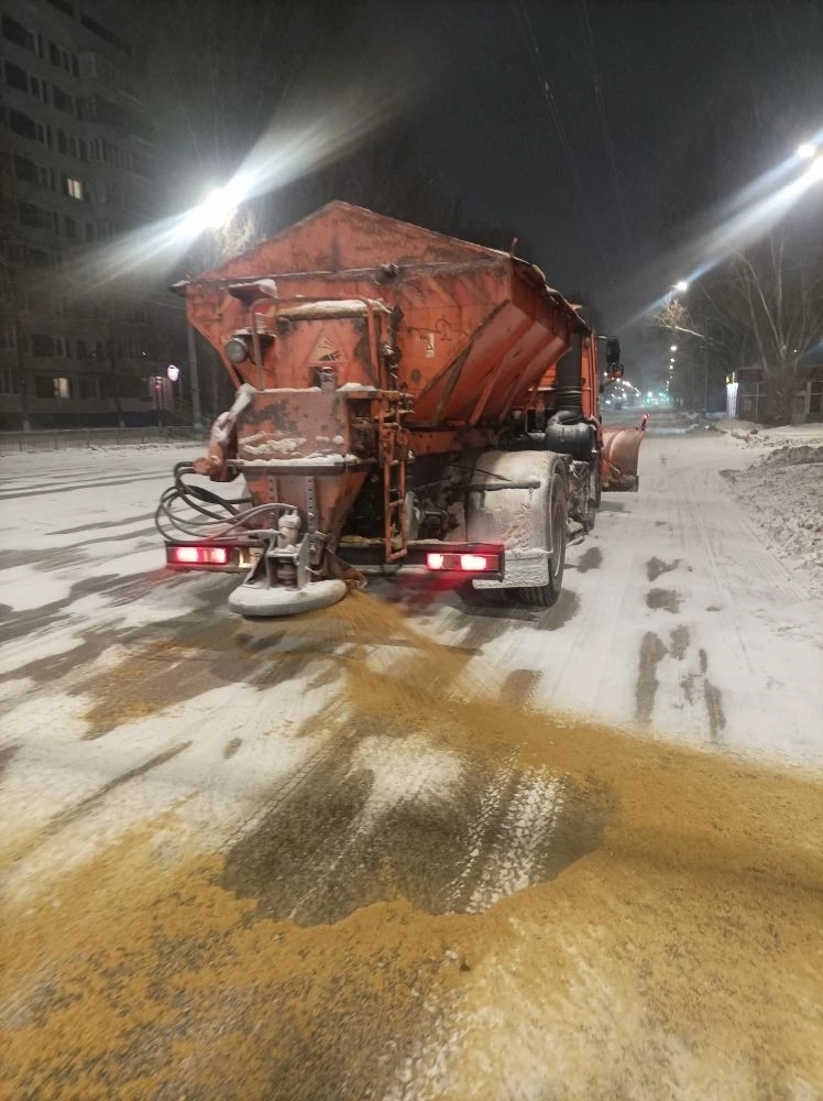 Для обработки дорог и тротуаров использовано 211 тонн пескосоляной смеси и 18 тонн твёрдого реагента.