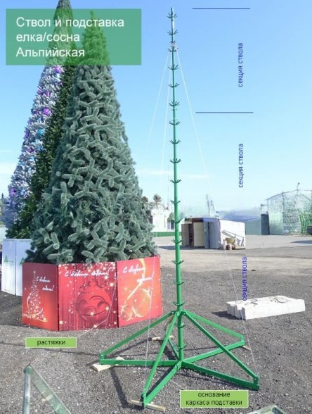 Каркас реалистичной уличной елки высотой 9 метров.