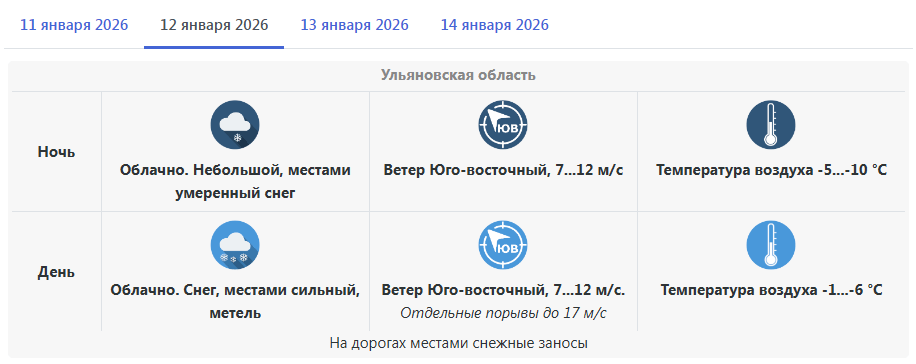 По прогнозу Гидрометцентра, в начале первой рабочей недели наступившего года в Ульяновской области ожидается неустойчивый характер погоды, южный циклон принесет новую порцию снега и тепла. В понедельник регион накроют метель и сильный ветер. На дорогах сохранится гололедица.