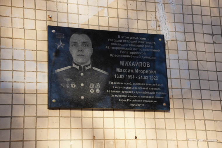 Мемориальную доску в честь героя СВО Максима Михайлова открыли на фасаде дома №44 по улице Врача Михайлова, в котором жил военнослужащий. В торжественной церемонии приняли участие глава города Александр Болдакин, заместитель губернатора Александр Коробко и мама бойца Аэлита Зубарева.