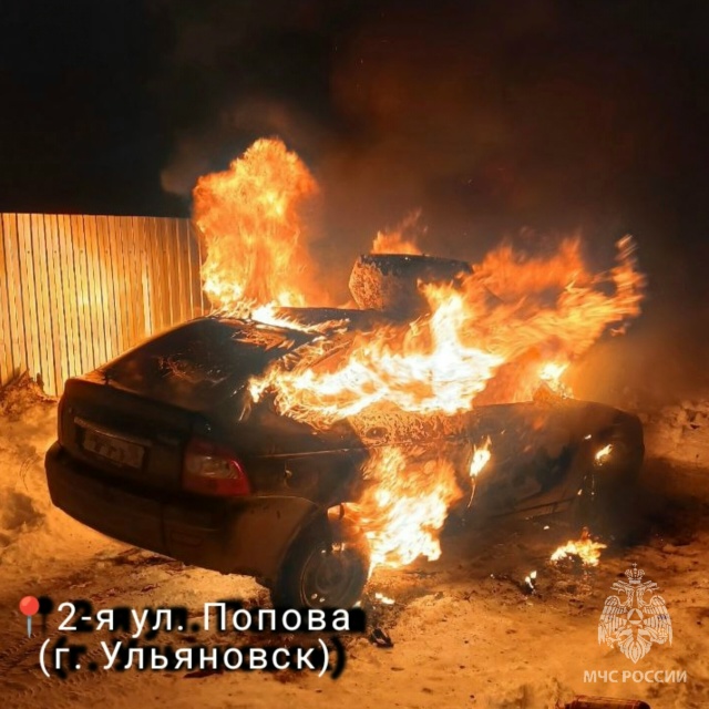 На улице 2 Попова в Ленинском районе Ульяновска произошло загорание легкового автомобиля. Огнем уничтожен салон автомобиля, повреждено лакокрасочное покрытие на всей площади.