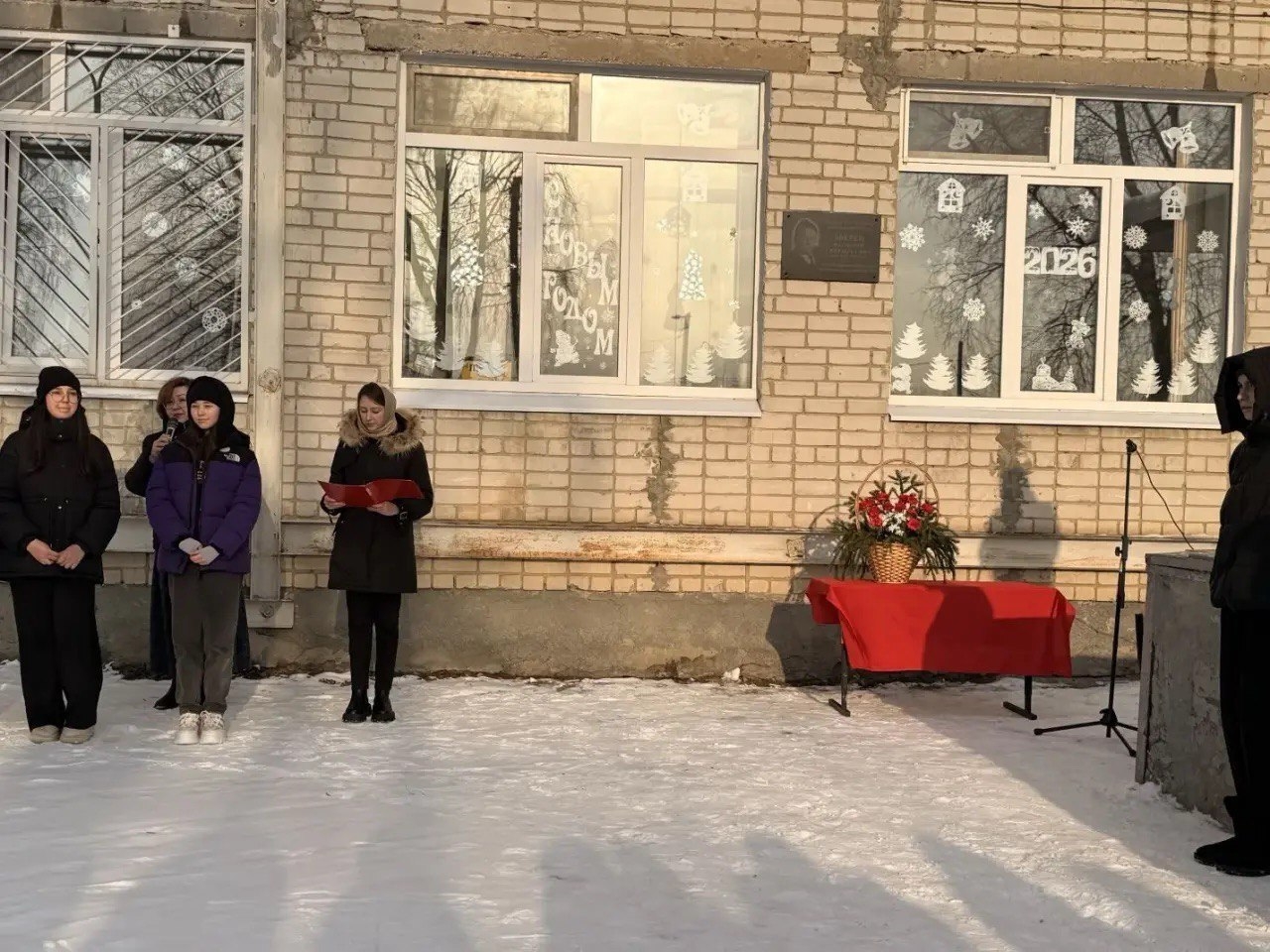 На фасаде здания разместили мемориальную доску в память директора образовательной организации Василию Григорьевичу Звереву.